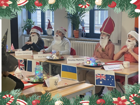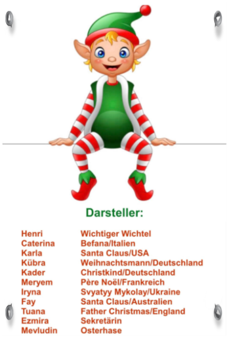 Zu einer ersten gemeinsamen Weihnachtskonferenz trafen sich in der Rosenschule die Weihnachtsvertreter verschiedener Länder, um sich über landestypische Sitten und Bräuche auszutauschen.